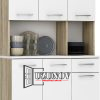 С впечатляваща височина от 185 см, бюфетът предлага голямо пространство за съхранение. Горната част е оборудвана с шкафове и рафтове, подходящи за съдове, чаши и други кухненски принадлежности. Долната част включва плътни вратички и отделения, идеални за подредба на домакински съдове или хранителни продукти. Модулният характер позволява гъвкавост при разпределението в пространството.