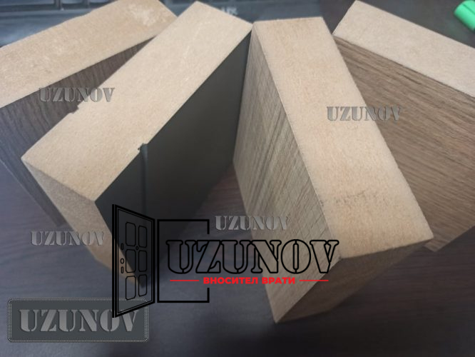 Крило изработено от плътен HDF (High Densty Fiberboard-материал, произведен от естествени дървесни частици чрез сухо горещо пресоване, твърд и устойчив във времето) и моноблок MDF, крилата и первазите са покрити със структурно 0.20мм PVC покритие (защита против надраскване), крилата са звукоизолирани, влагоустойчиви и топлоизолирани .